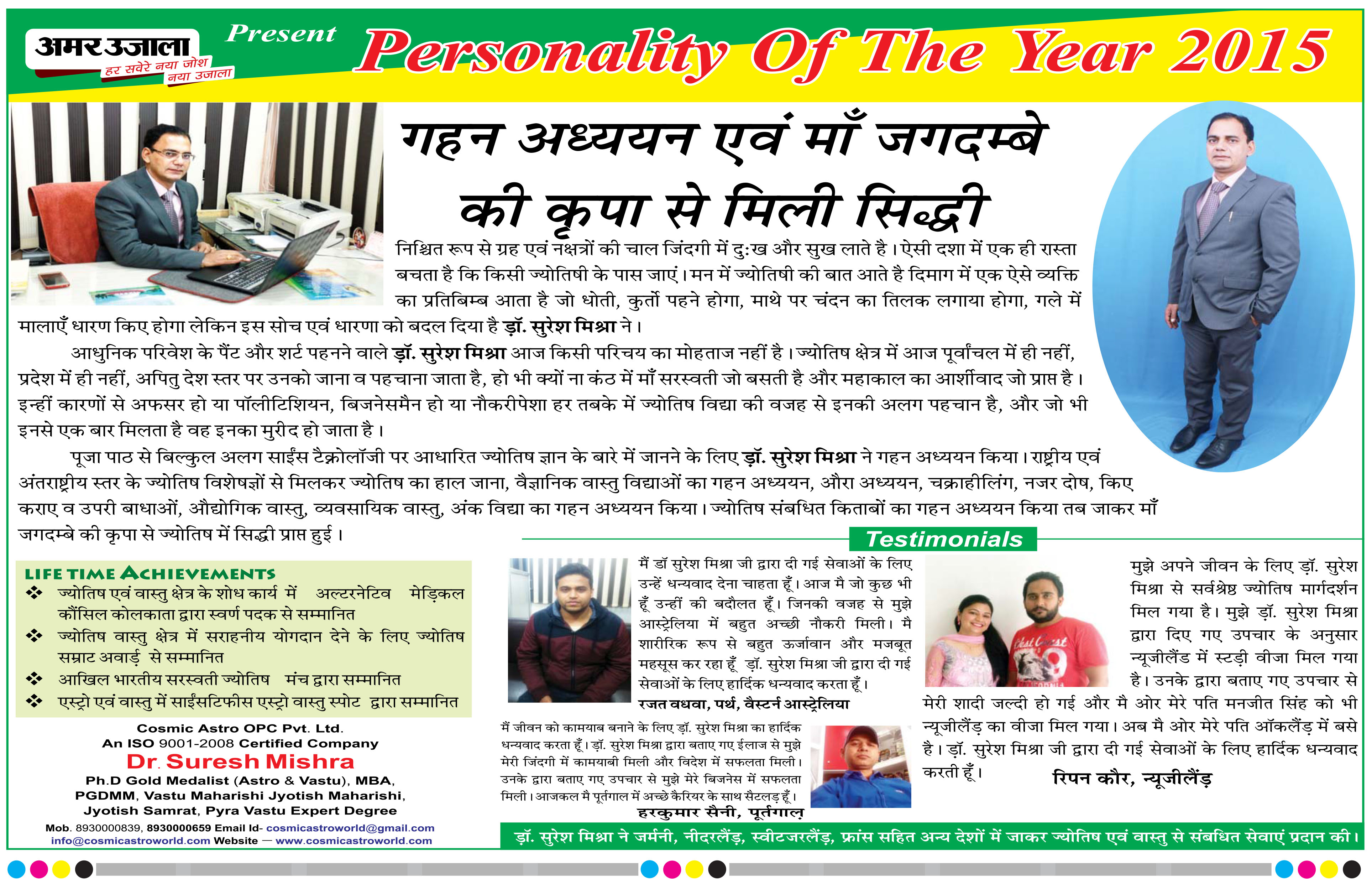 Dr Suresh Mishra is an expert in Astrology, Numerology & Vastu. Astrology runs in his blood as his great grandfather Pandit Sita Ram Mishra was a great astrologer (1860 - 1930)
